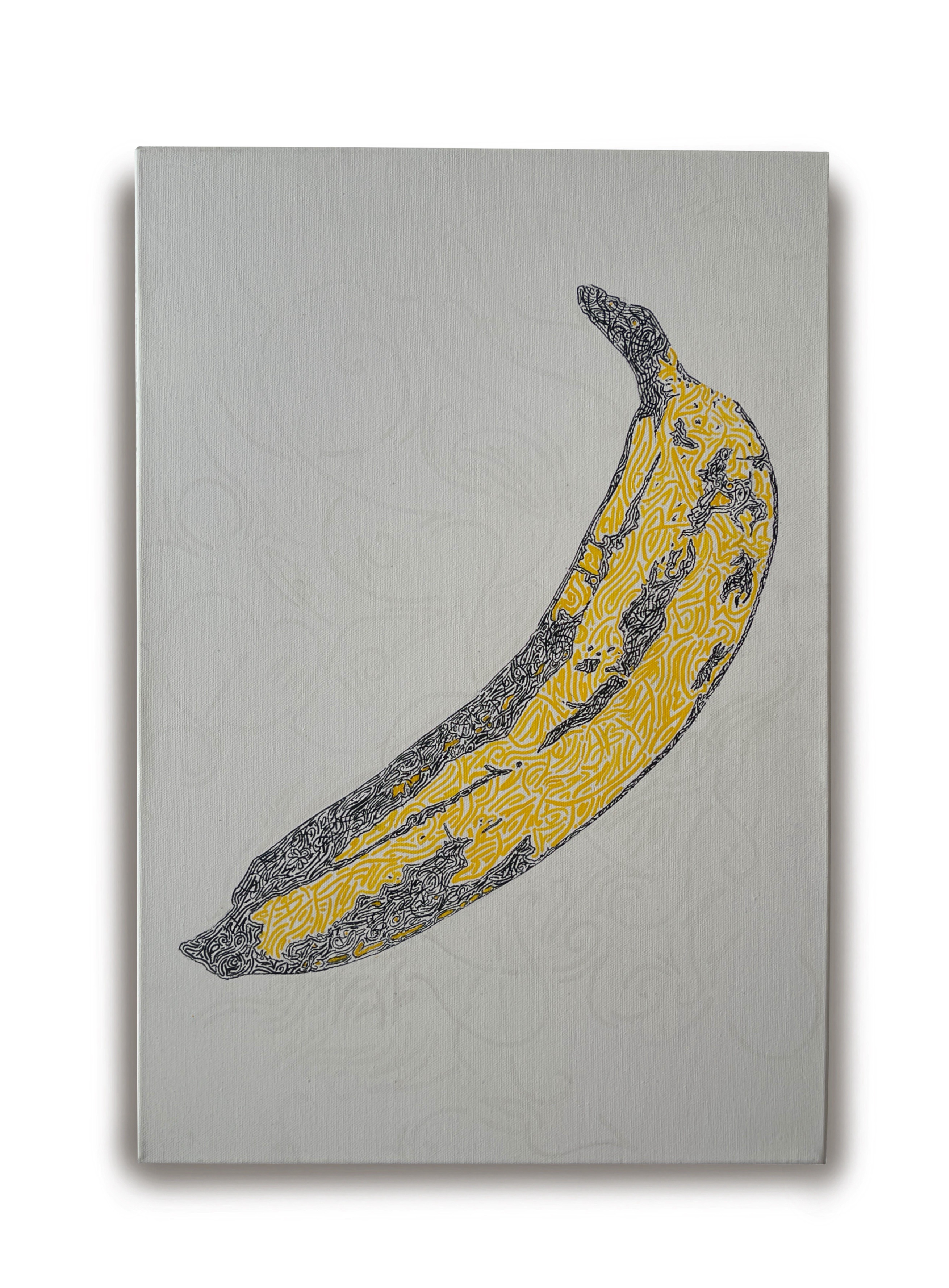 Известный банан из поп-арта, отсылка к произведению Энди Уорхола, пропущен через графику и ритм линий.
