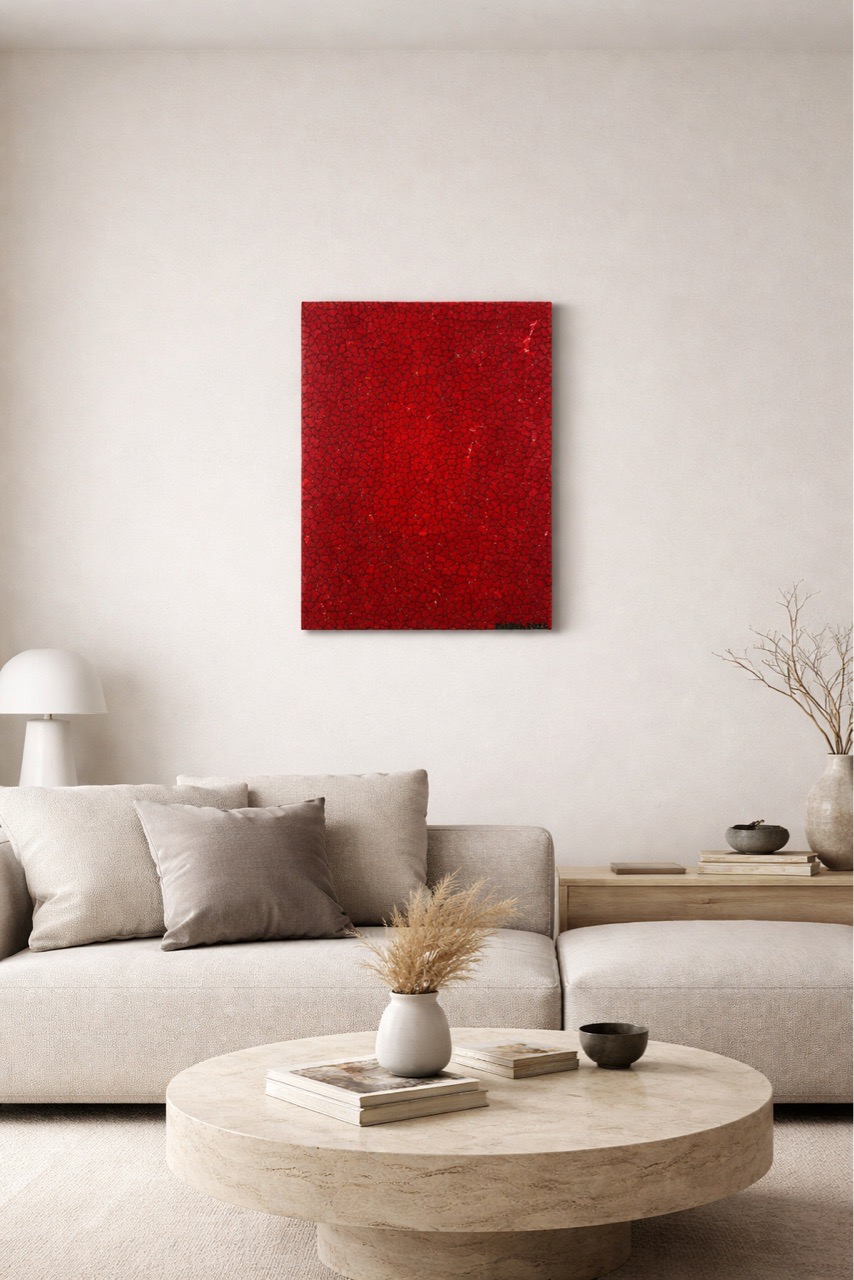 Картина напоминает коврик для ног перед входом в дом. Ха-ха-ха! Это похоже по текстуре шершавой. И если честно писать мазаику на коврах не было в новинку, так что уникальность присутствует, по крайней мере для меня. И меня разозлило и удивило то-что лак для прочности, ушел в пять раз больше чем я планировал. Работа получилась достаточно блёклая и невзрачная, ну а если приглядеться то можно также распознать мой стиль и манеру написания.