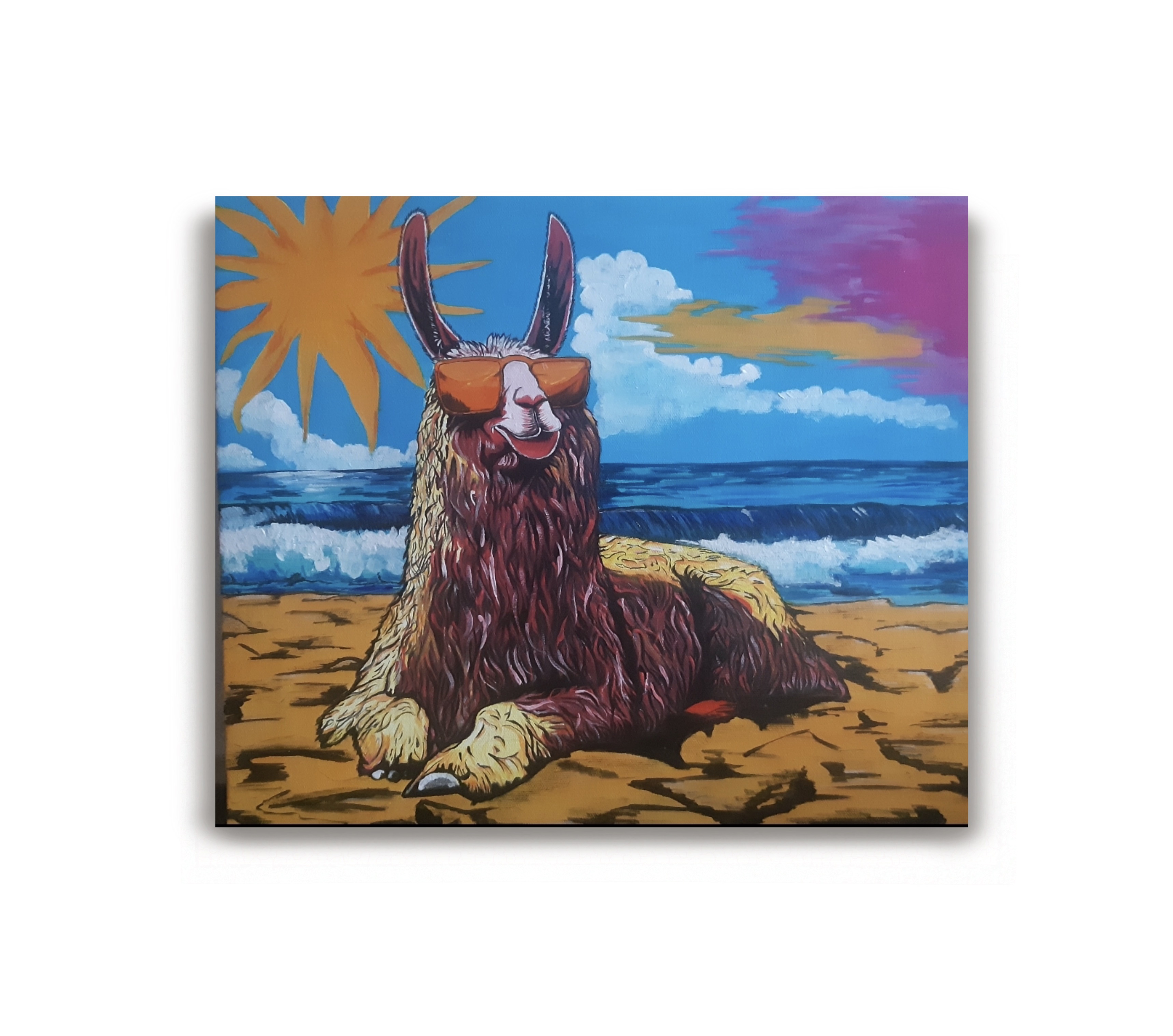 Весёлая лама наслаждается отдыхом на солнце
