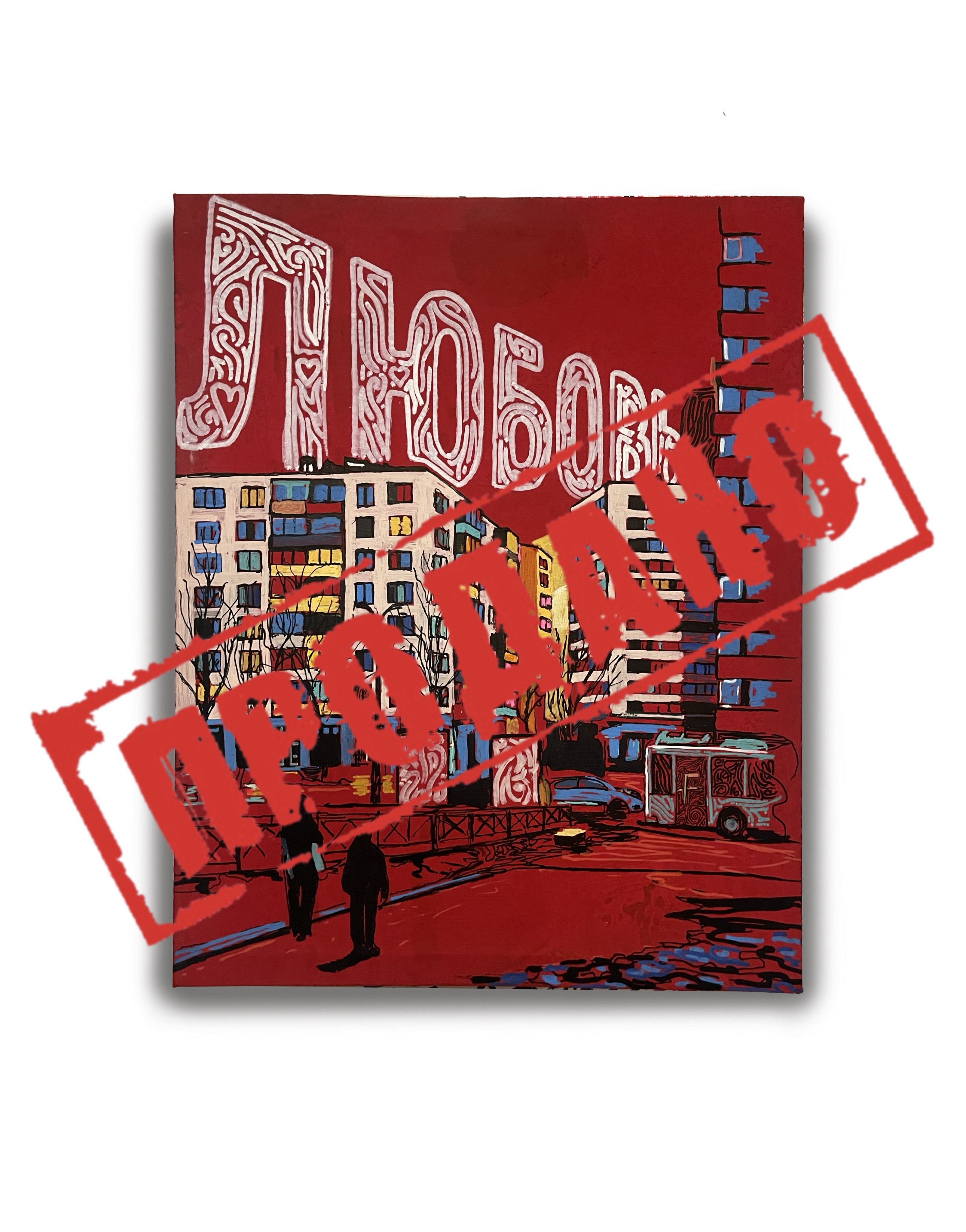 Первая картина триптиха. Она была создана в результате рефлексии после расставания с девушкой, которую я очень сильно любил. Работа получилась спонтанной и была нарисована поверх картины по номерам моей бывшей девушки, которую она забыла, когда съезжала.