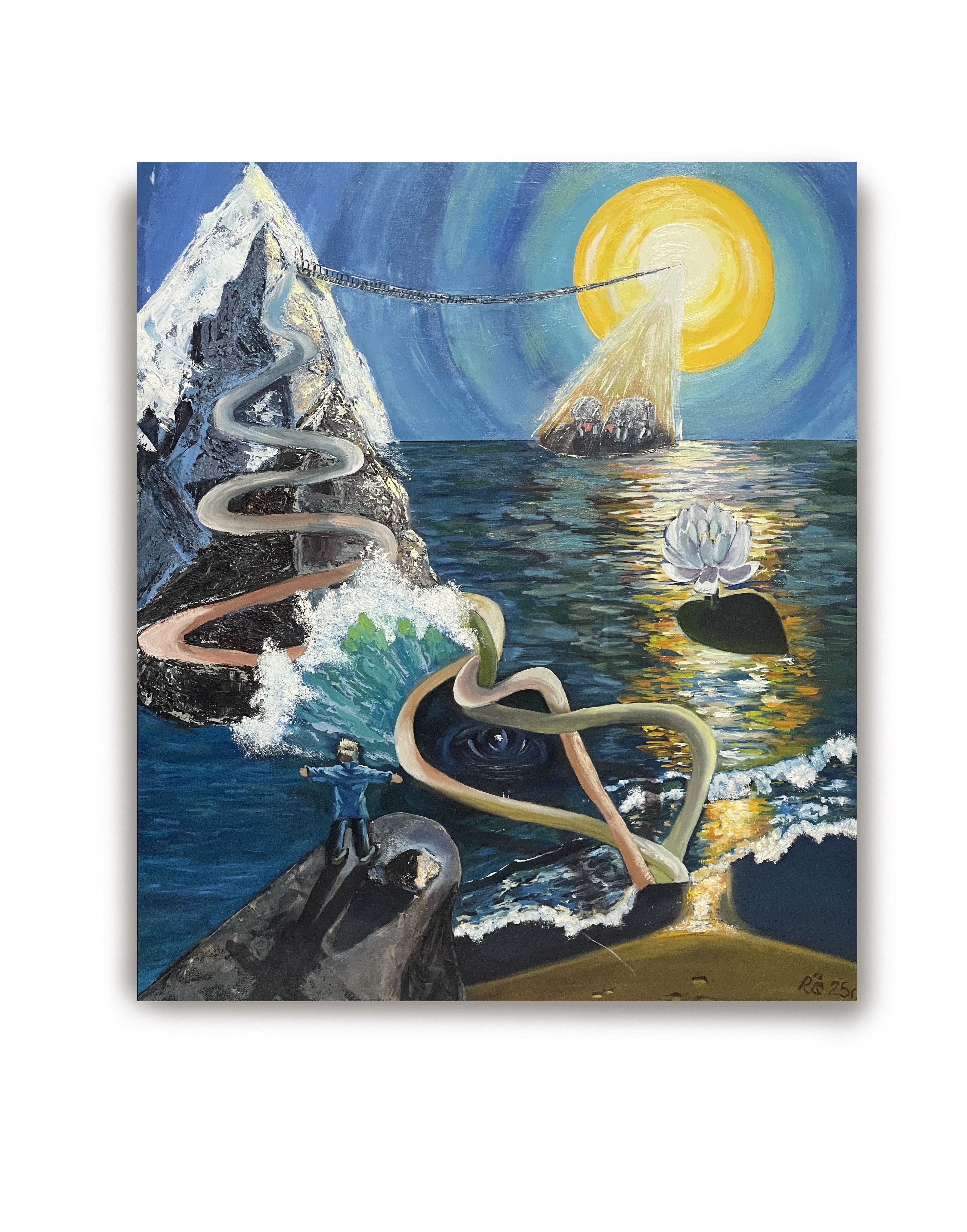 Иногда я оглядываюсь на свой путь. Смотрю, анализирую, перепроживаю моменты. И выглядит это так на картине: c некоторой возвышенности, откуда просматривается вся жизнь, и видны дороги духовности, семейного благополучия, карьерного роста, желанием доказать самой себе... «Откуда пришли, туда и уйдём» ,оставив свой след, достижения и память потомкам. Такая вот немного философская.