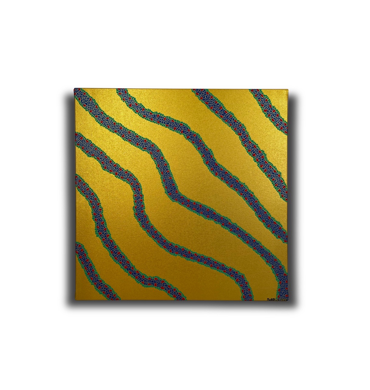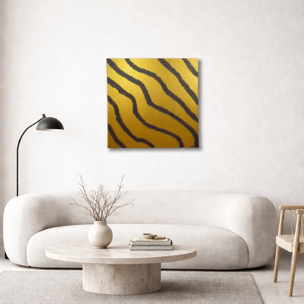 На этой работе представлены потоки жизни, и они одновременно существуют и протекают в одной временной плоскости, да только петляют и ведут себя по разному. Прекрасная работа чем-то напоминает разводы на песке от волн моря. Интересное сравнение, в интерьере классно смотрится.