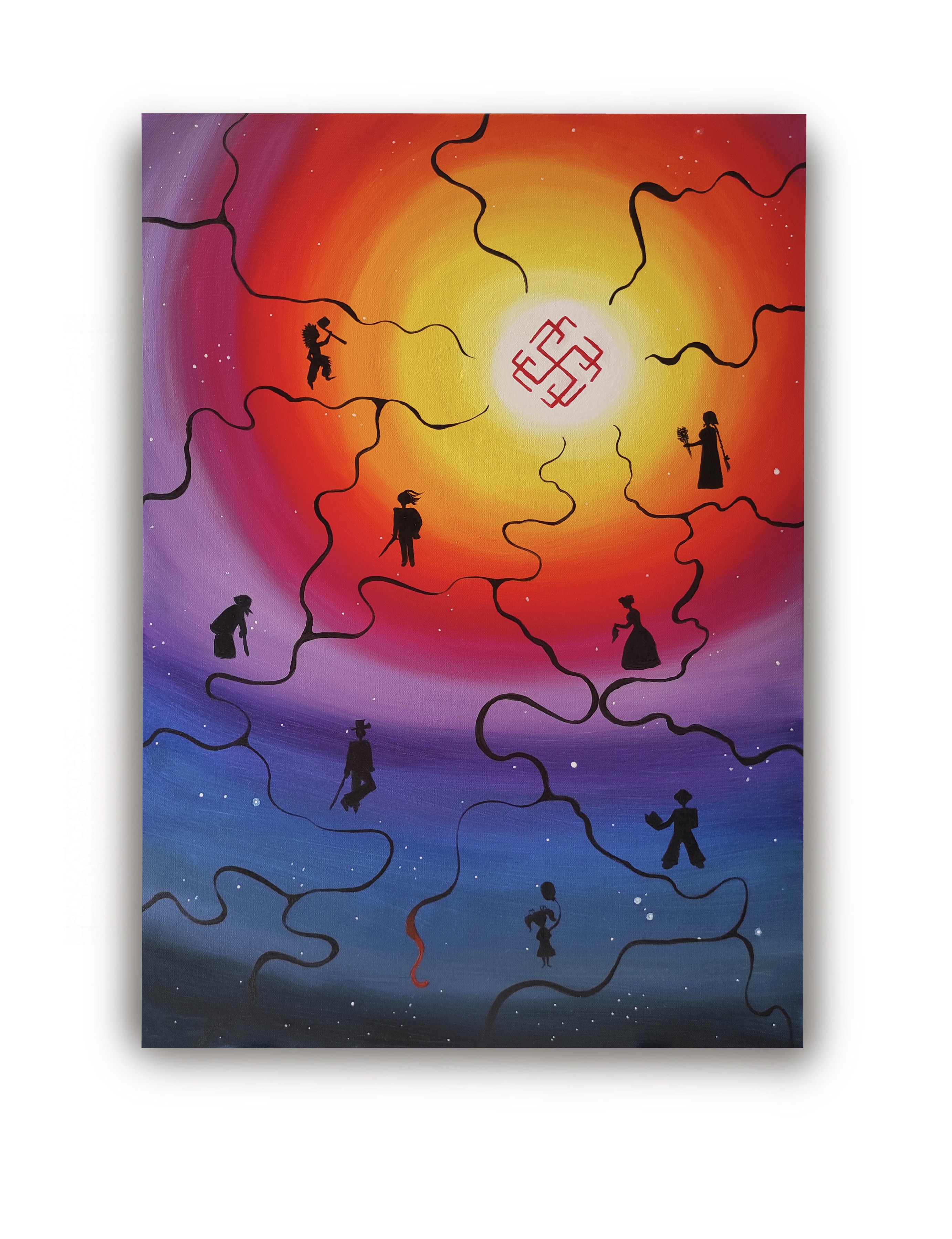 На картине «Родословная» представлен символ славянского оберега «Родимич», он призван подчеркнуть глубину и бесконечность родословной, её связь с космическими силами. Линии, исходящие от оберега, символизируют различные ветви рода, их переплетение и взаимосвязь. Фон подчёркивает величие и значимость родословной. Таким образом, картина передаёт идею о том, что родословная — это нечто большее, чем просто история семьи, это часть космического порядка, влияющая на судьбы людей.