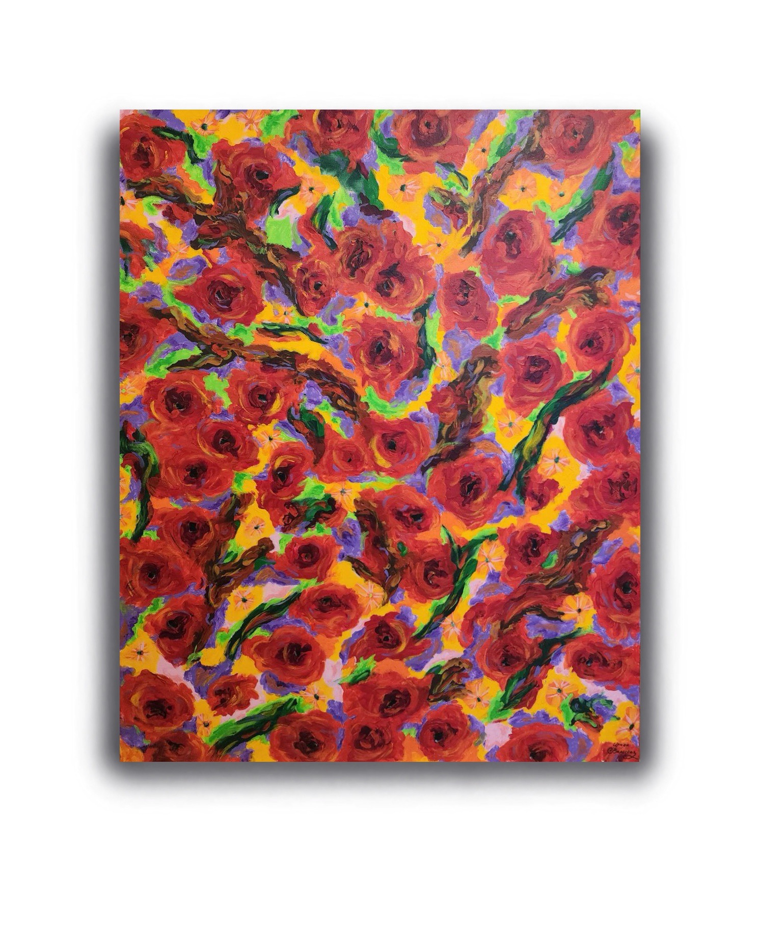Это не изображение цветов, а начало цветения. Цветения чувств и цветения новой любви. Розы рассыпаны по поверхности, как воспоминания, как повторяющийся мотив чувства.