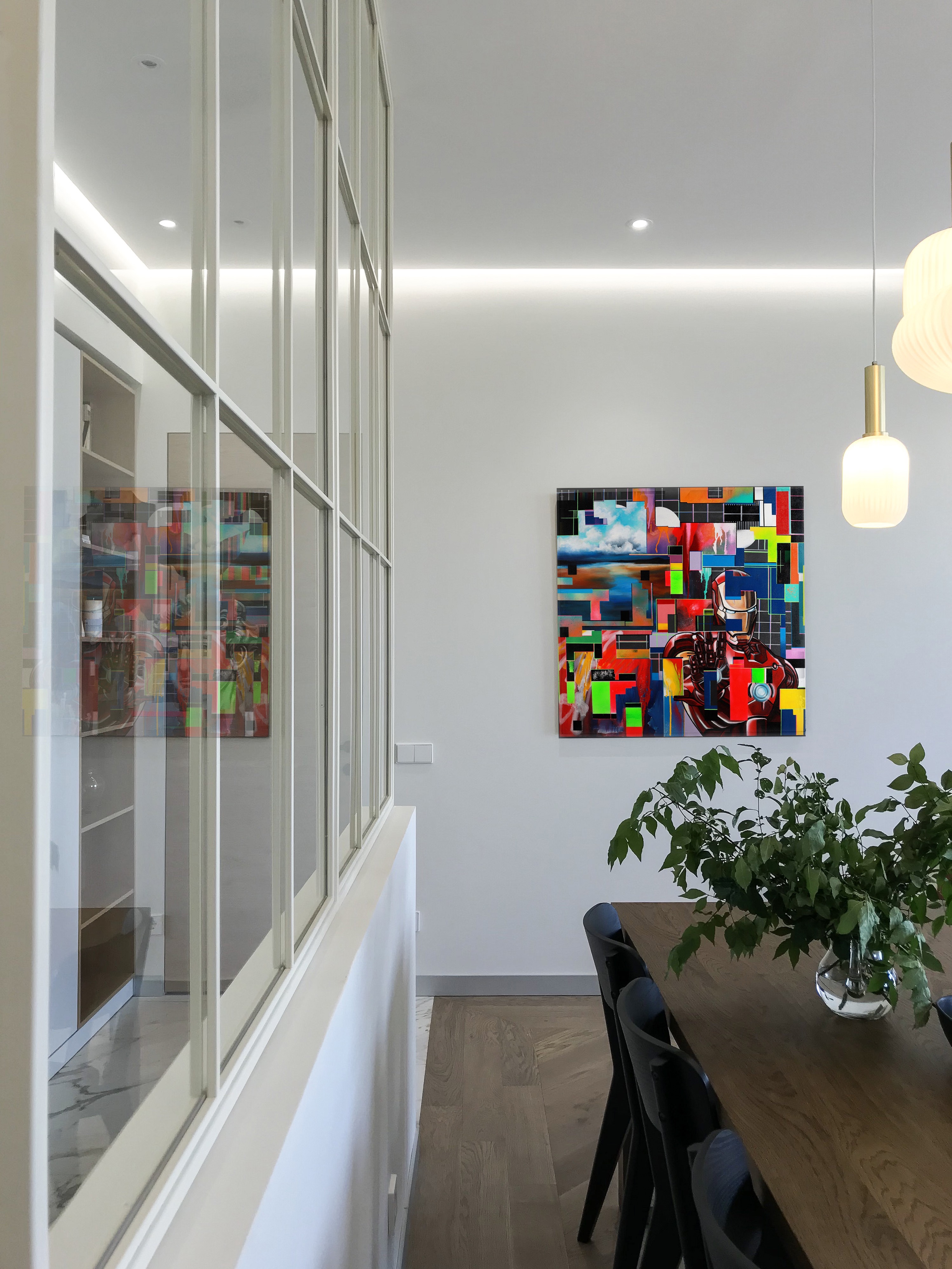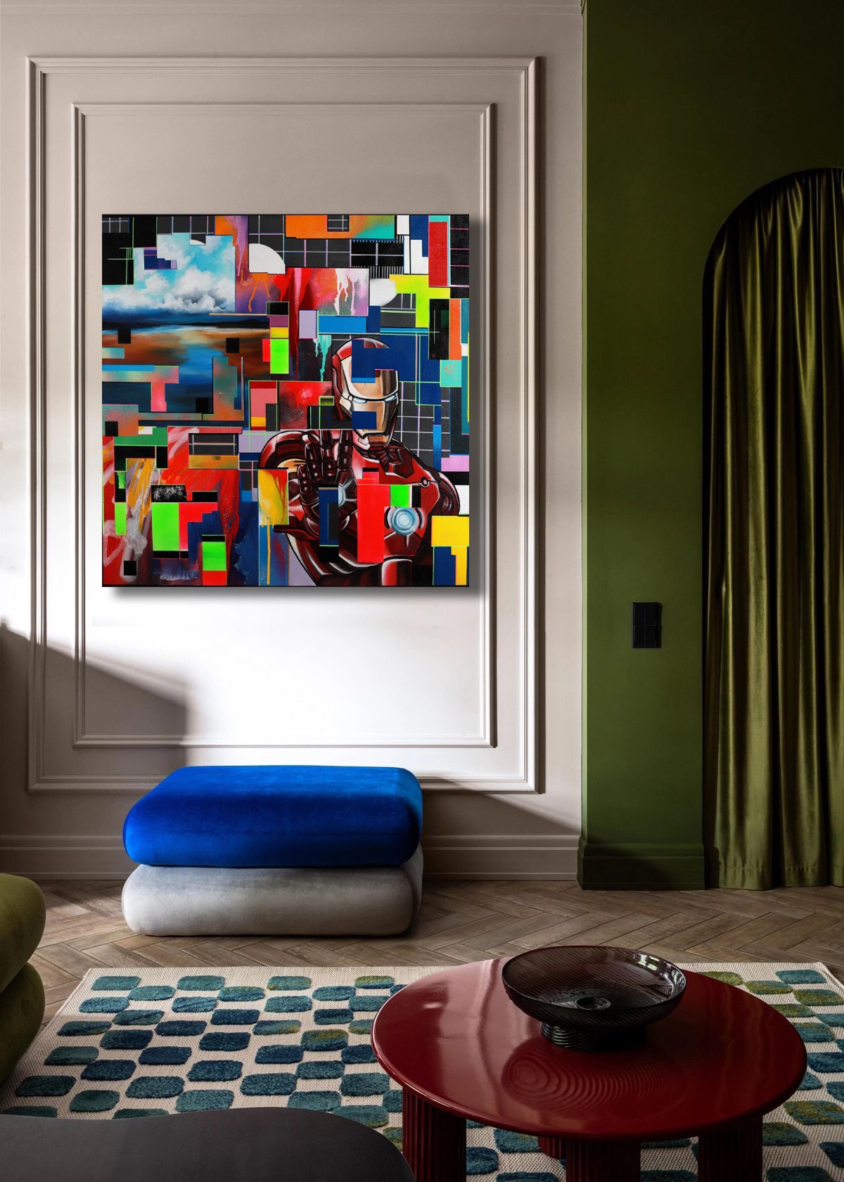 Картина предлагает сделать следующий шаг в размышлении: а что, если у каждого из нас уже существует цифровой дубль — улучшенная, отфильтрованная версия себя? Она выглядит сильнее, успешнее, увереннее, но при этом почти не имеет связи с реальностью, телесностью и подлинным опытом. Это не развитие личности, а её симуляция.Известный персонаж здесь становится точкой сенсорного захвата —магнитом внимания, через который художник втягивает зрителя в более глубокий разговор. Но одновременно он выполняет и предупреждающую функцию: утрата контакта с собой, подмена идентичности образом и жизнь через аватар могут привести не к свободе, а к ещё большей внутренней изоляции.