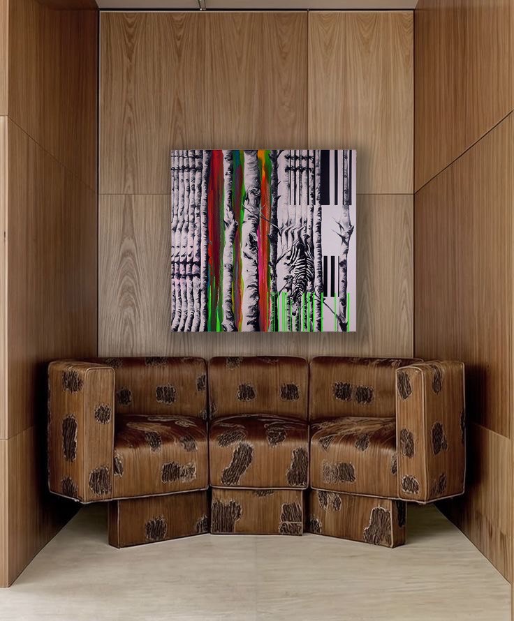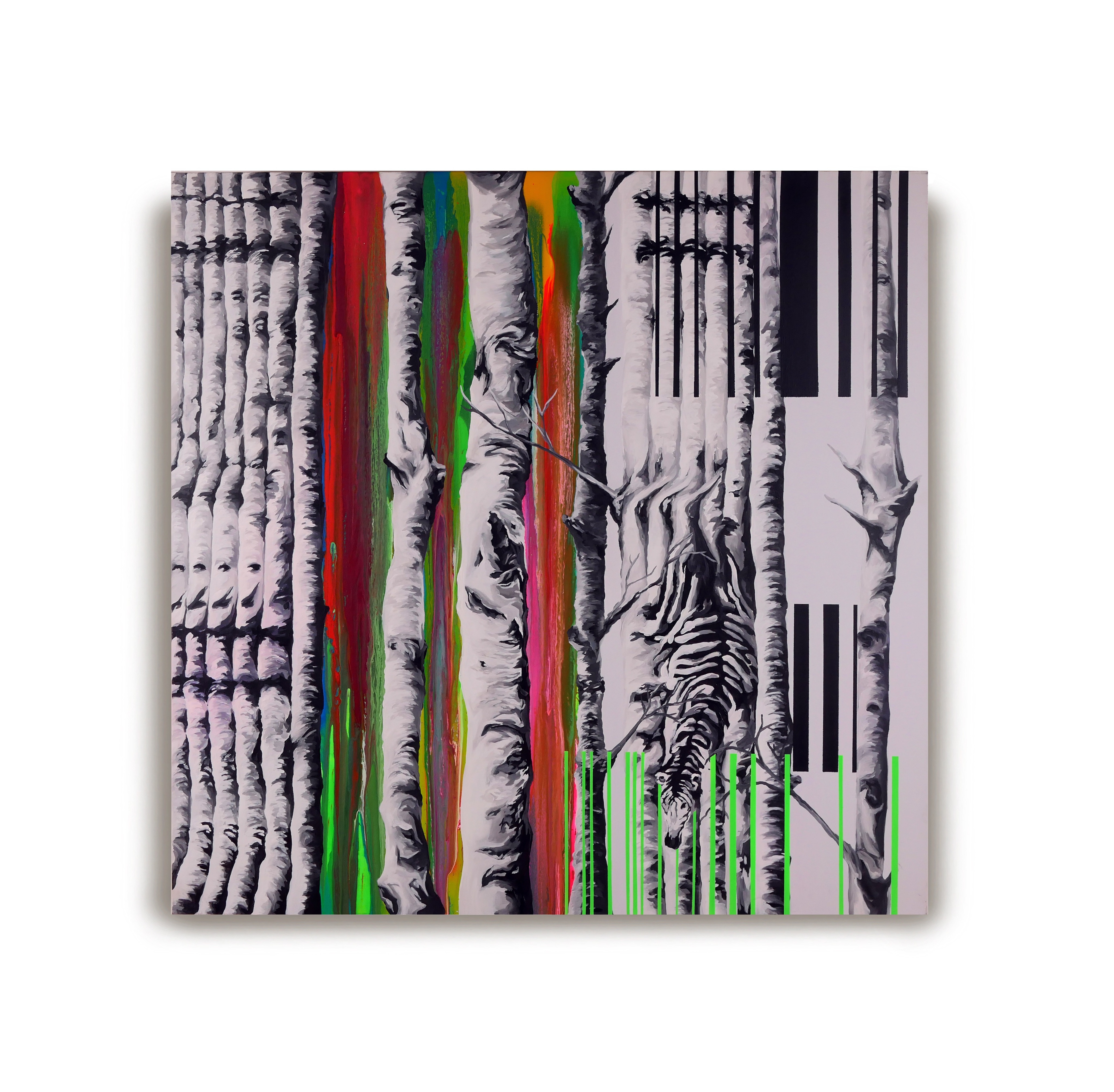 Чередование чёрных и белых полос в картине отсылает к бинарному мышлению, к привычке делить мир на «правильно» и «неправильно», «да» и «нет». В этом ритме легко потерять главное — глубину, нюанс, промежуточные состояния, где и рождаются подлинные смыслы. Художник показывает, как стремление к упрощению способно ослеплять, превращая сложную картину мира в плоскую схему.