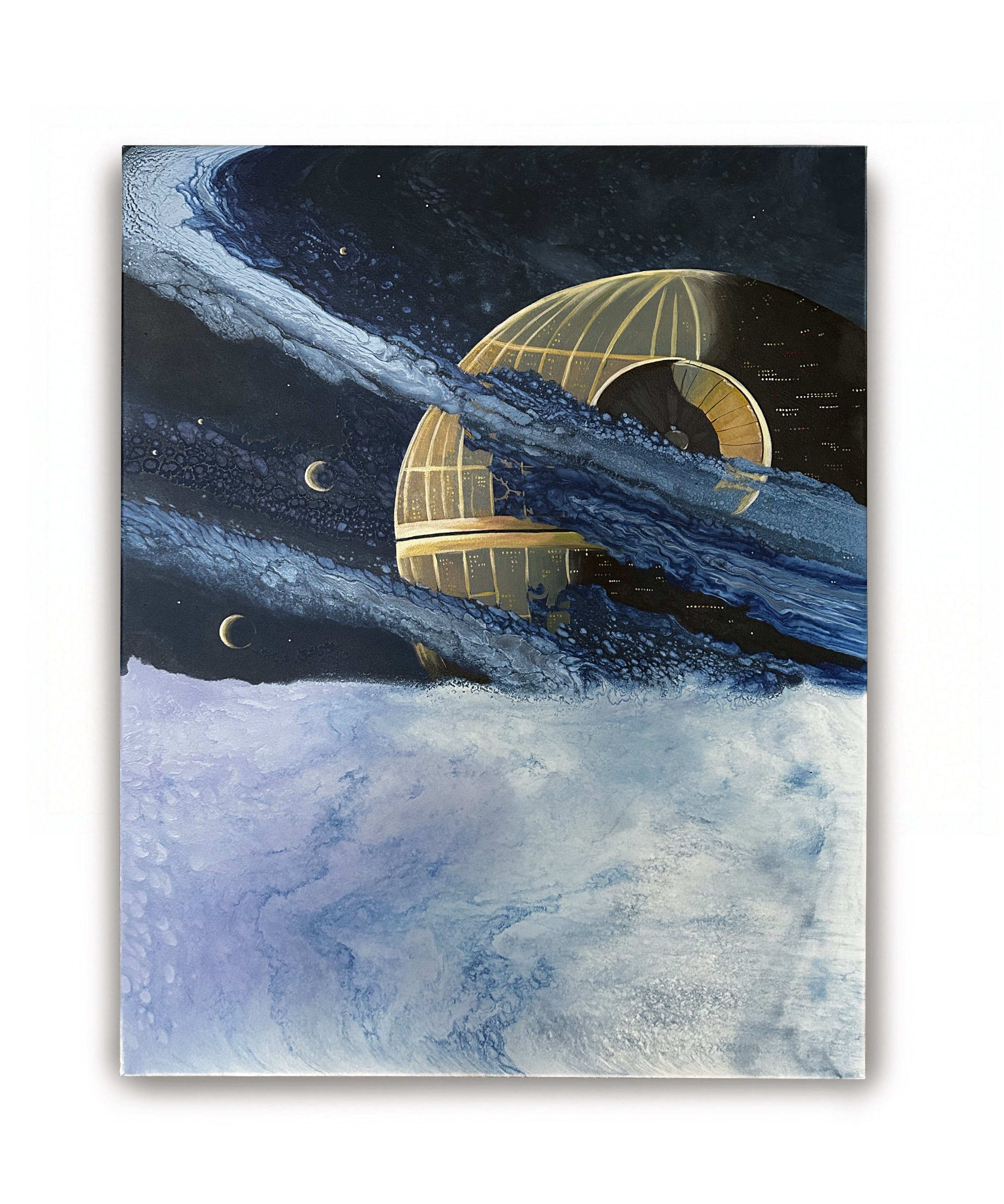 В центре композиции — величественный космический объект, окутанный сиянием и пересекаемый энергетическими потоками. Фоновая атмосфера, созданная Еленой Казанской, передаёт движение и глубину, словно наблюдатель парит в межзвёздном пространстве. Катя Белова добавила высокоточные детали космических кораблей и архитектуры, формируя образ древнего, но высокотехнологичного стража, наблюдающего за просторами вселенной.