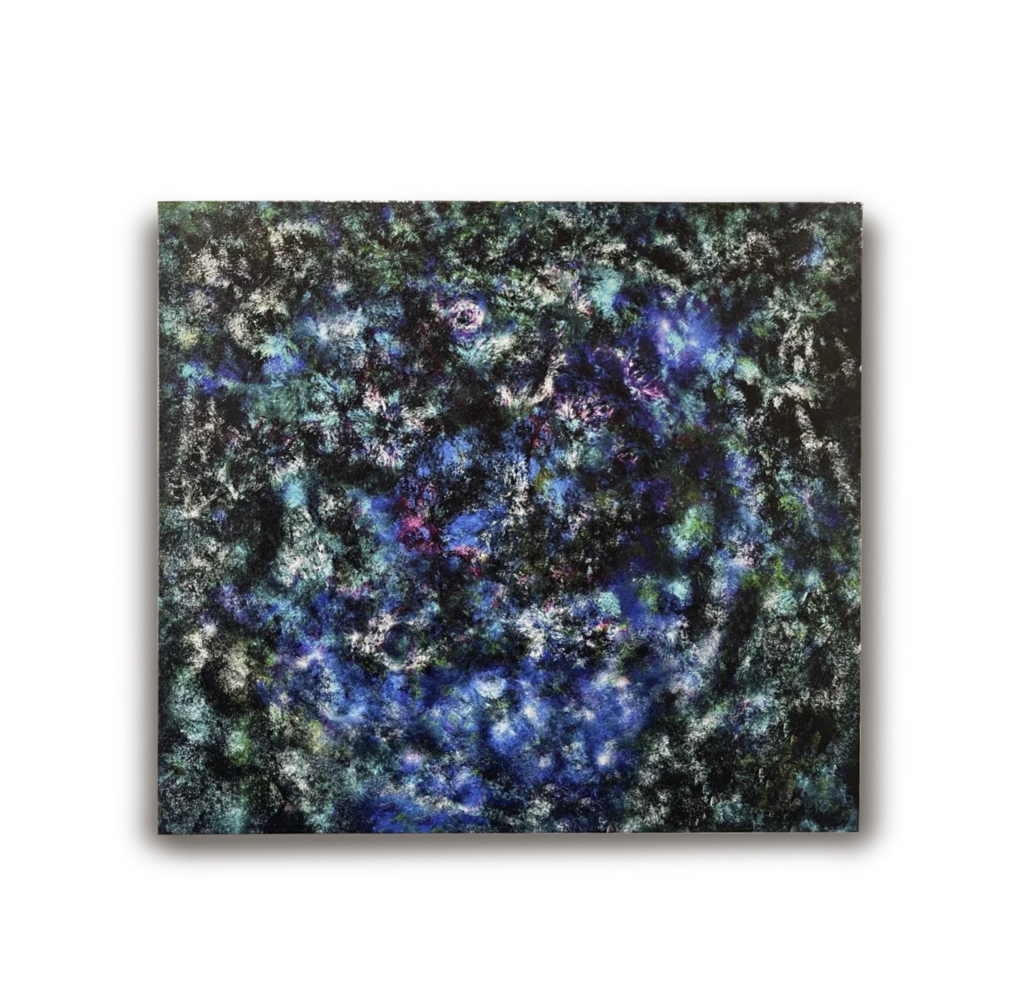Асимметрия и отсутствие чётких границ создают ощущение неупорядоченности, но в этой хаотичности есть своя логика — как в природных катаклизмах или колебаниях биржевого графика. Цветовая палитра играет ключевую роль: глубокие тёмные тона формируют «фон нестабильности», а яркие акценты — это вспышки волатильности, нарушающие покой. Белые и светло-голубые мазки мерцают, как пульсации энергии, а шероховатая текстура усиливает ощущение турбулентности.