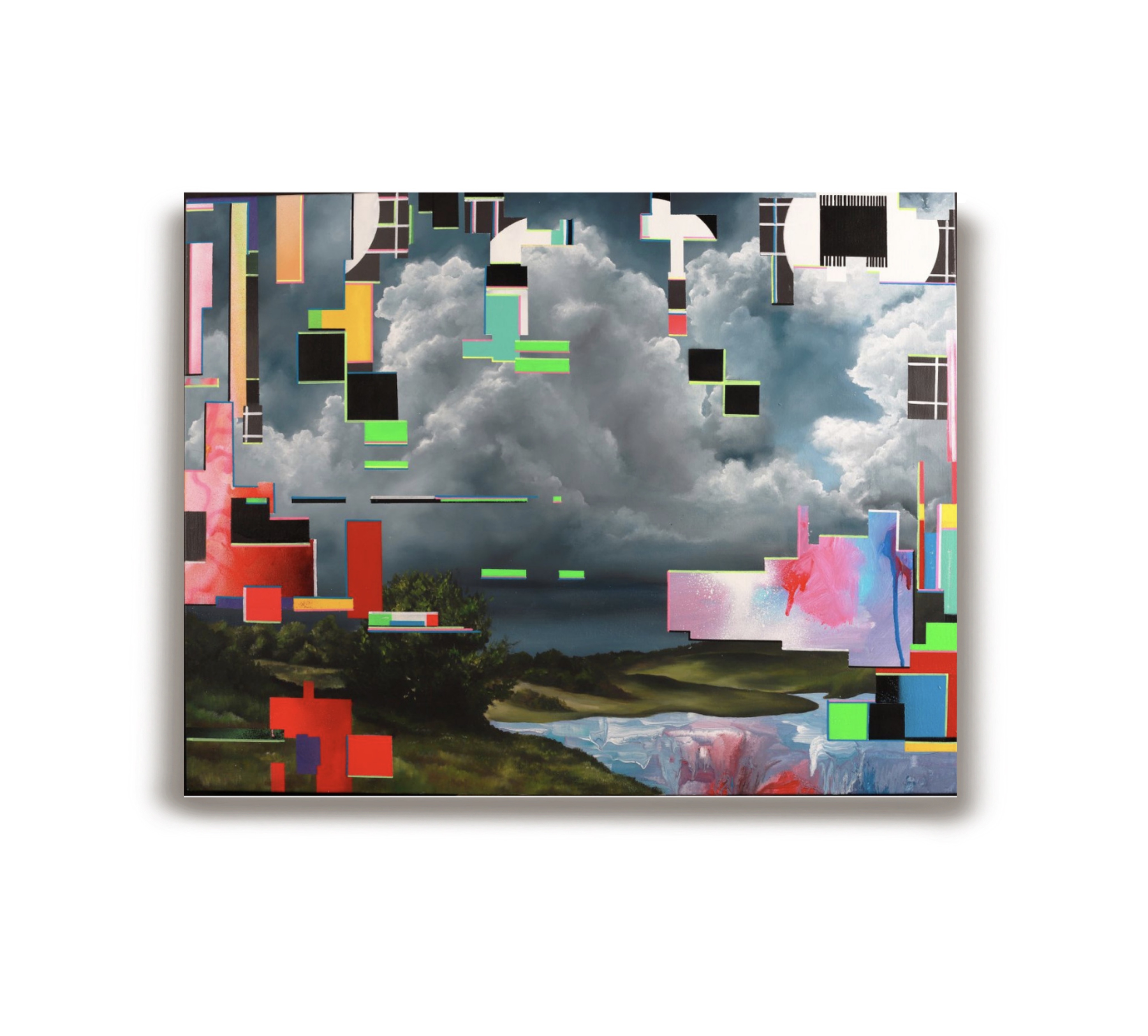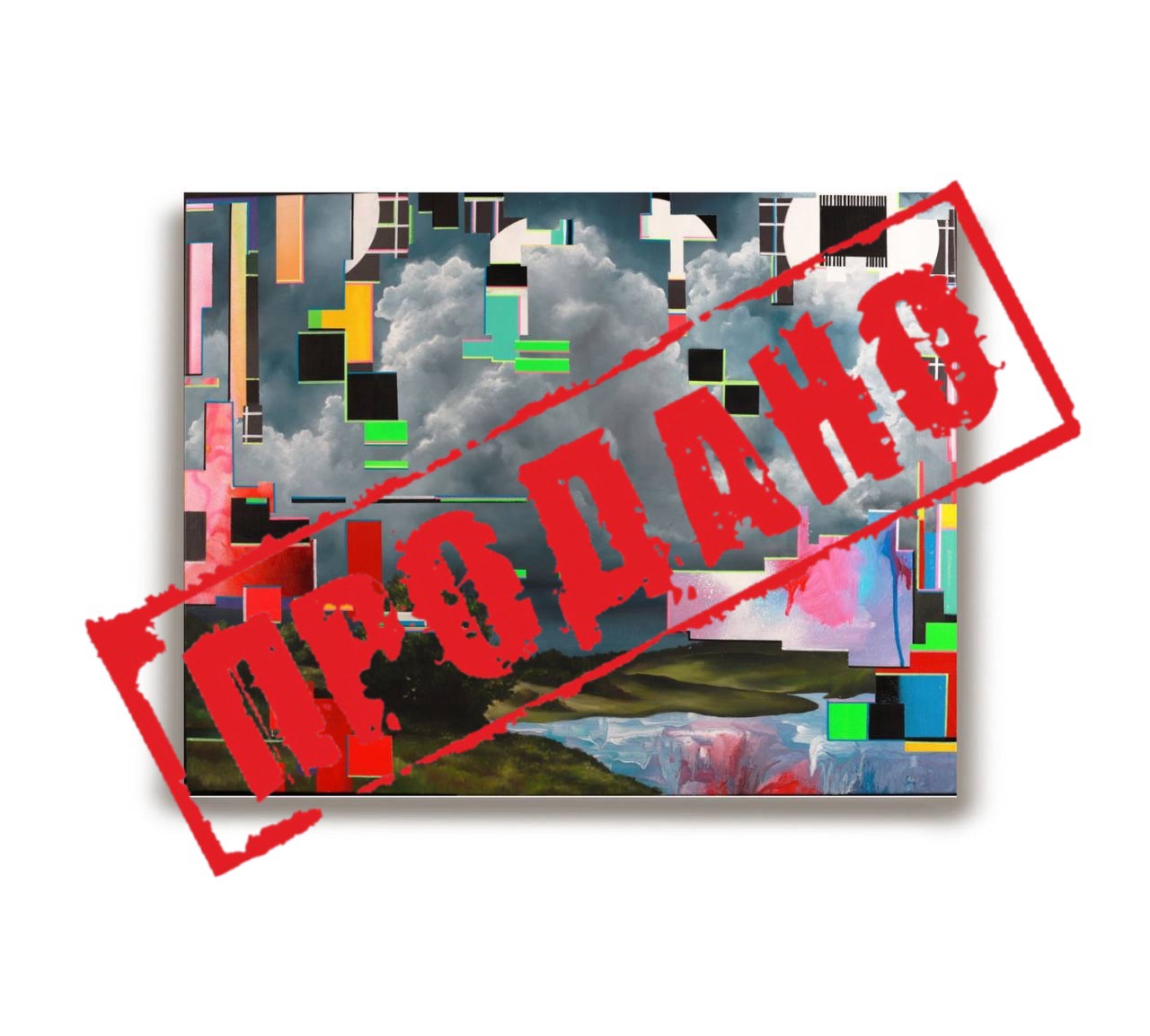 Яркие шумовые всплески, вторгающиеся в композицию, символизируют этот цифровой разрыв — помехи внимания, которые заслоняют от нас истинную красоту природы.Эта работа — размышление о том, как современный человек всё чаще проживает реальность через экран, упуская её подлинное присутствие. Картина фиксирует не пейзаж, а момент утраты контакта — между взглядом и миром, между тишиной природы и шумом информационного потока.